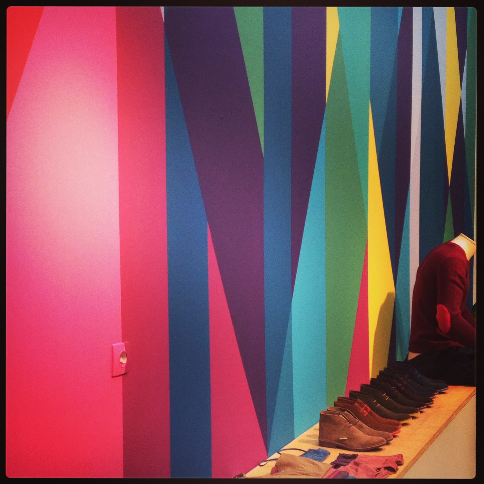 Voici les nouveaux habits de lumière du show-room Bensimon à Paris … Pour présenter la collection de l’hiver prochain, le grand mur est, cette fois-ci, peint d’une fresque aux couleurs de la gamme de peintures Bensimon pour Ressource et au plafond, des lampes Tom Dixon gold … A chaque saison décidément, désolée de me répéter, mais la magie opère toujours !!!