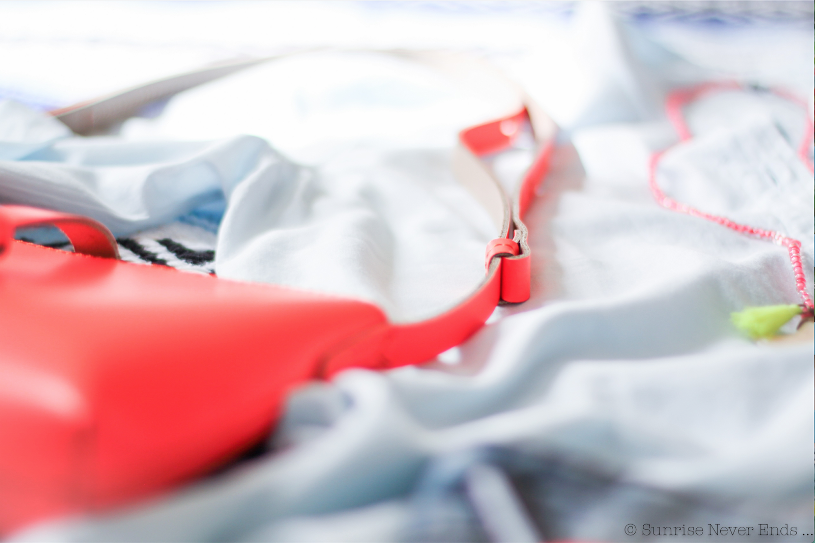 Ma furieuse envie de bleus en ce début de printemps, je vous en ai déjà touché deux mots ici … A ces camaïeux de bleus plutôt pales, j’ai désormais envie d’associer avec le soleil qui se pointe de manière homéopathique des touches de corail fluo … Bon ceci dit, cette envie a commencé avec mon coup de coeur pour la bagagerie Maison Lasserre au pop-up store The Clothette en Février dernier et elle s’est amplifiée avec l’ouverture parisienne de la boutique JCrew où au milieu des basics j’ai juste été capable de craquer pour un sac en cuir corail fluo !!! Bref on mixe le tout, le bleu calme le fluo et le fluo vient réveiller les bleus … Bon combo non ???!!! … Par contre pour le short c’est du bluff, on va attendre encore un peu … Et quant à ma sublime couverture mexicaine, en attendant la plage, elle réchauffe mon canapé !!!