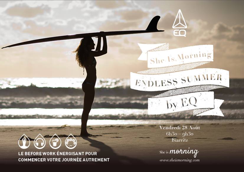 Mais demain je le serai ! Et pour toutes les filles du coin, voici une bonne raison de l’être aussi: She is Morning Endless Summer, le before work énergisant organisé demain matin à Biarritz en collaboration avec EQLove !