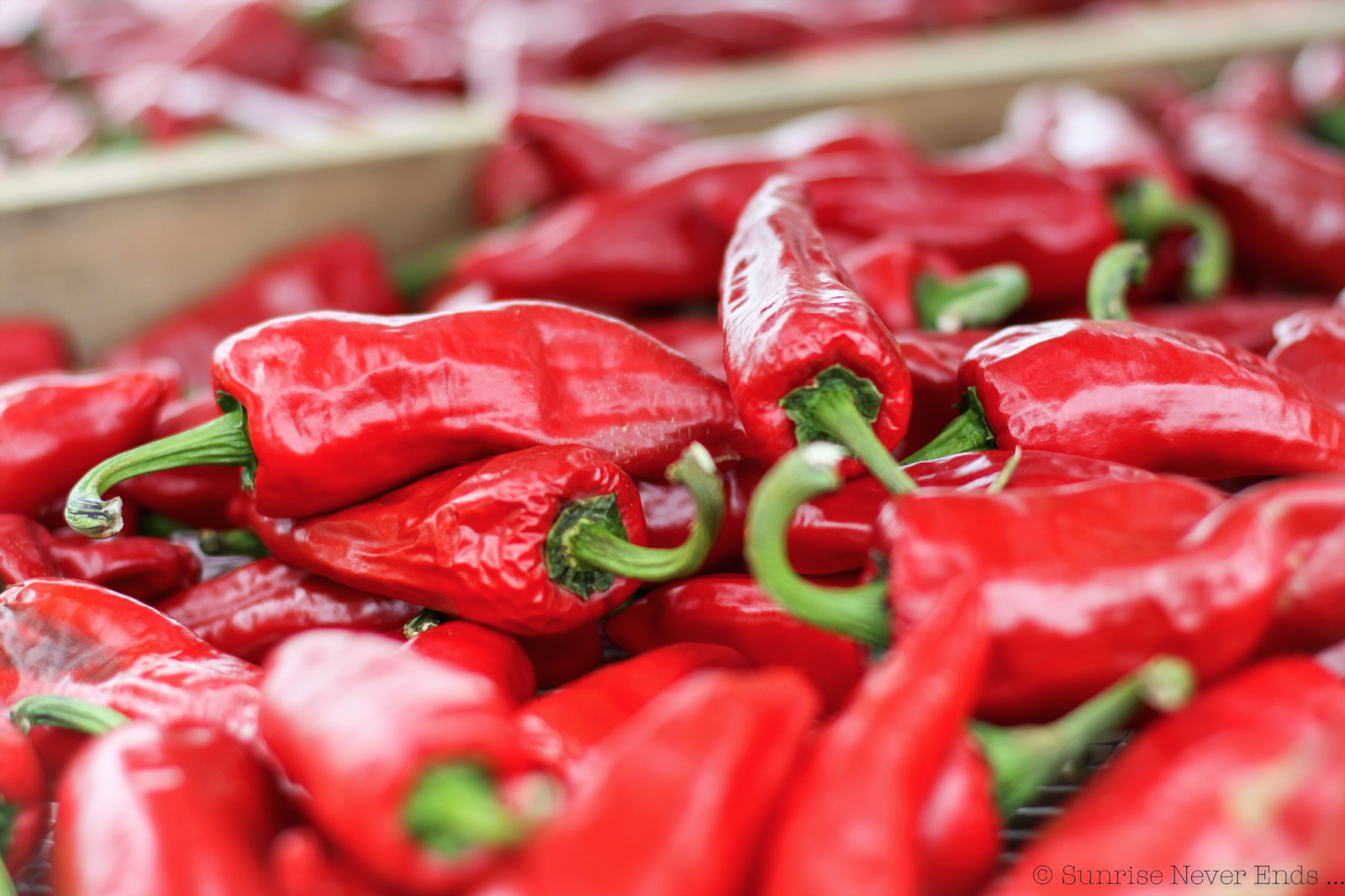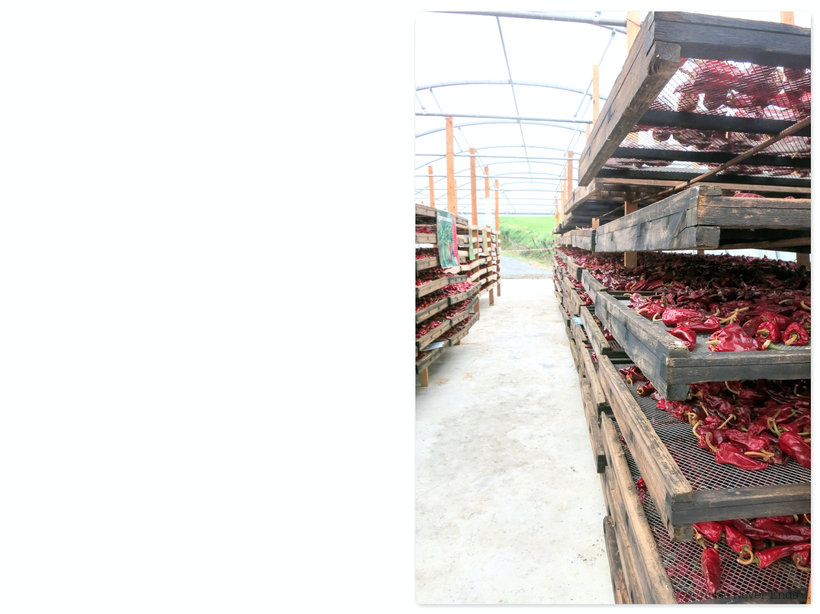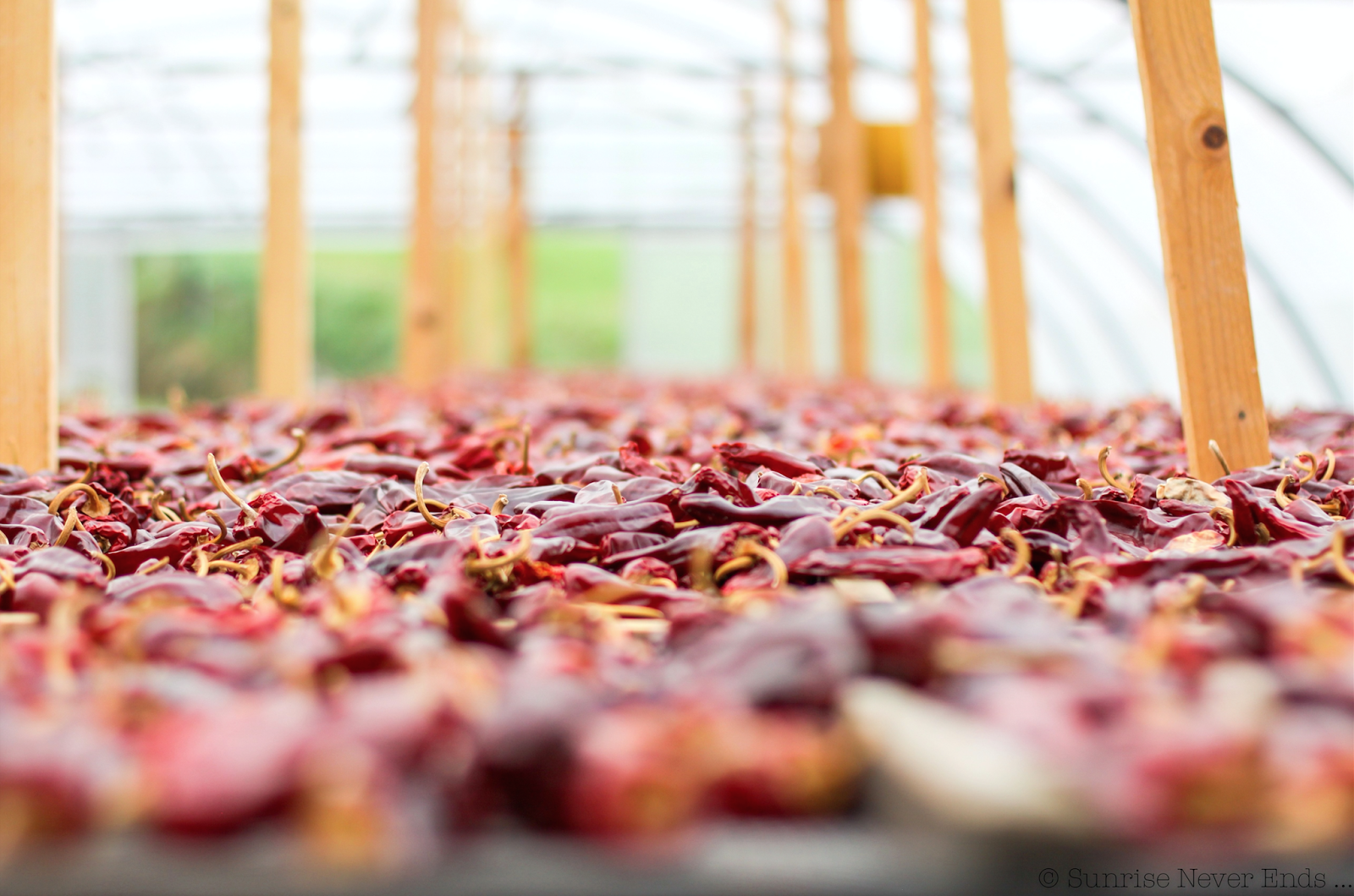Et puis la récolte des piments d’Espelette bat son plein (la fête du piment aura lieu à Espelette le 25 Octobre prochain…) et nous avons pu visiter, par le hasard d’une rencontre, un atelier des piments, celui de Louisette, qui nous a expliqué avec ferveur le déroulement de la saison des piments, de leur plantation à leur récolte, le tout à la main uniquement … Point de machines et de technologies ici et c’est finalement cela qui rend si belles nos campagnes …