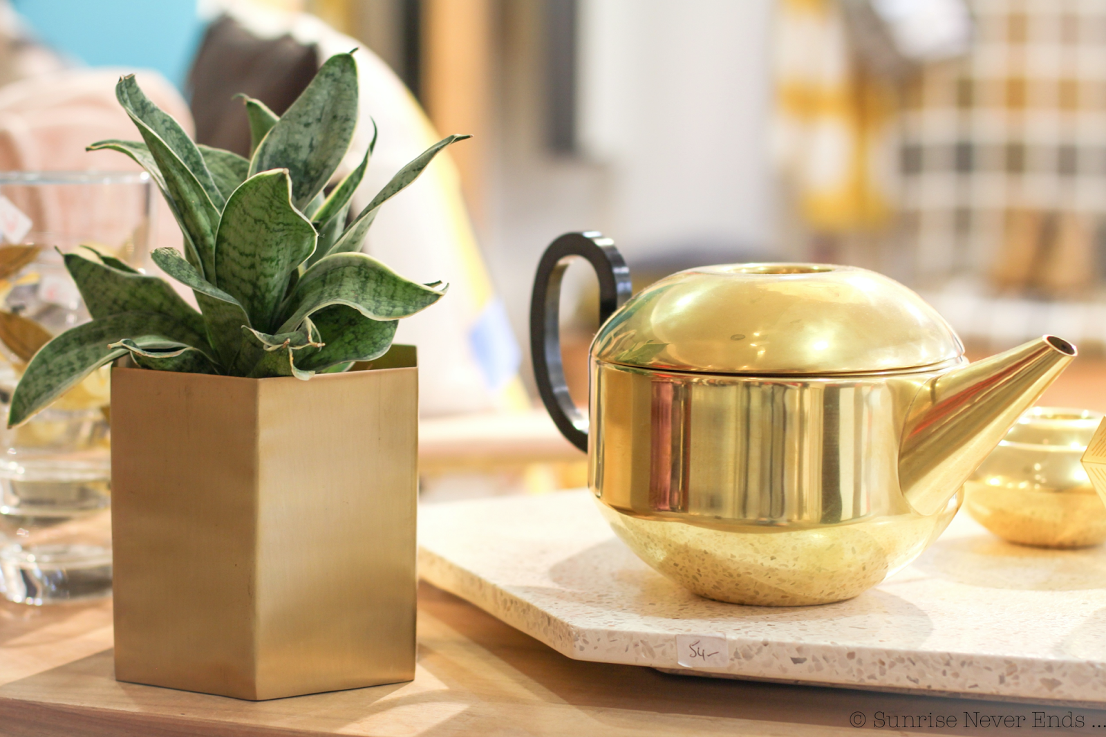 Et dans cette mise en scène légèrement bling, le service à café en laiton de Tom Dixon trouve sa place à merveille …