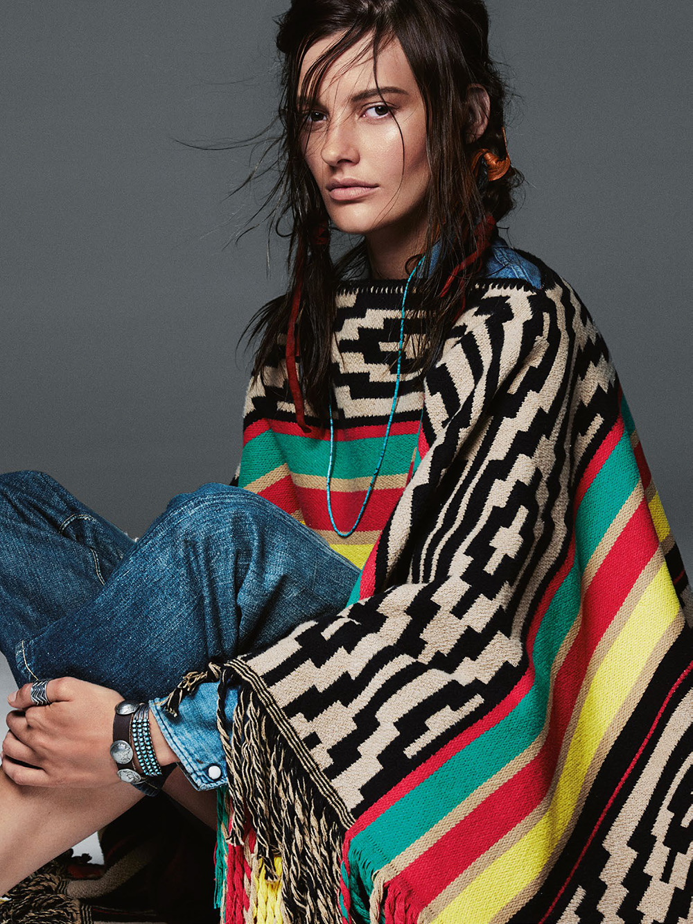 Les capes, la fourrure et le denim restent des valeurs fortes de cet hiver … A superposer en braillé/débraillé ouai je sais j’invente!, clean ou boho folklo selon le mood du jour … Indispensable toujours, les bijoux ethniques en tête desquels les turquoises encore et encore … Girls, si vous n’aviez encore jamais fait le plein chez Harpo, il est temps de trouver une alternative !!! Ah oui aussi, n’hésitez pas à vous trimballer un macramé sous le bras, il sera tout à fait dans l’ambiance boho débraillé que les braillés s’abstiennent sur le coup du macramé et le laisse accroché à leur minimaliste mur de Modern Bohomians ! Quant à moi, je m’embraillerais bien dans le poncho graphique et coloré de la cinquième photo genre, ce matin je me suis emballée dans mon kilim avant de sortir … Bref mode et déco font encore une fois la paire au royaume du mix and match !!! A vous de jouer !!!