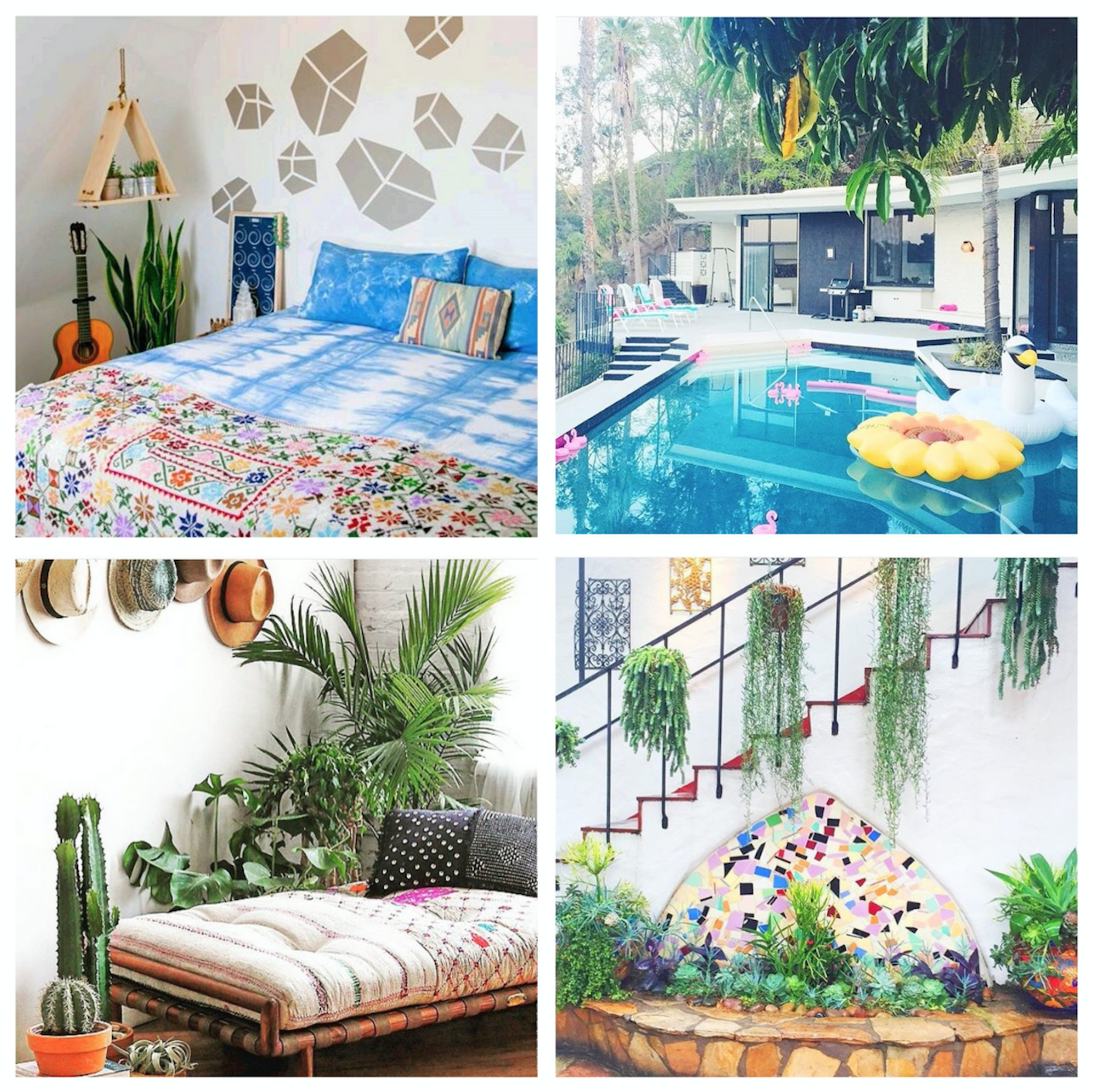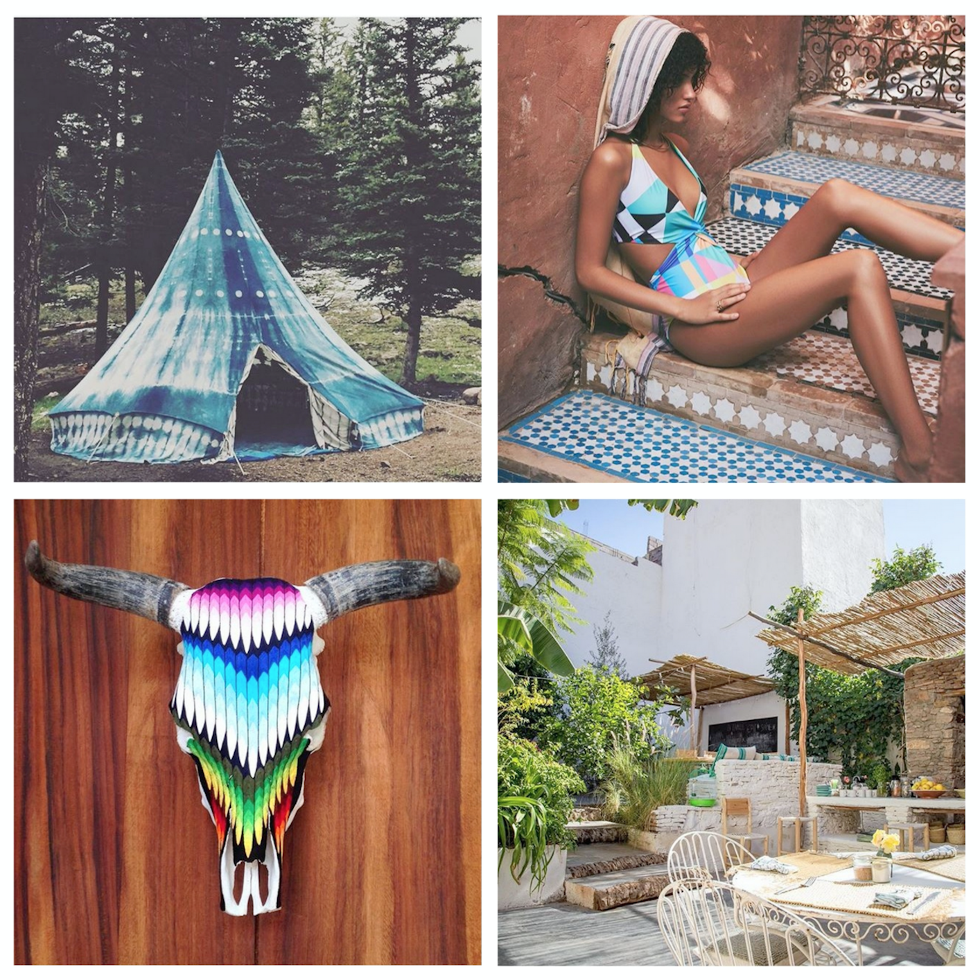 Bon ben comme un Lundi matin habituel, j’ai envie de soleil, de ciel bleu (jusqu’ici tout va super bien à la plage !!!) de chaleur (là ça se complique tout de même un peu !!!) … Trainer sur Instagram est toujours une succulente source d’inspiration, surtout que je suis des comptes essentiellement ensoleillés à l’autre bout du monde ou fuyant le moindre nuage dès qu’il se pointe (un vieux fantasme !!!) … Donc voici du soleil et des bonnes ondes en stock depuis Hawaïï, l’Australie ou le Mexique en passant par le Maroc … Un peu de mysticisme, beaucoup de coolitude, un brin de hippie arty mais plutôt jet-set cette semaine entre Marfa et Miami (quoique la gypset a eu les nuages et la pluie ce week-end à Miami pour Art Basel !!!) (mais bon Miami quand même quoi !!!), des plantes vertes et des feuillages tropicaux toujours parce que le vert c’est la vie, des broderies, des fleurs, de la couleur et ce motif Oeil qui me poursuit de plus en plus !!! Bonne semaine à vous !!!