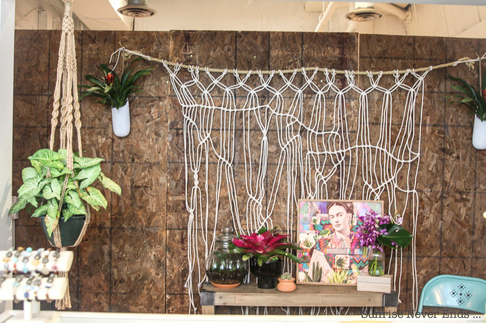 Aujourd’hui, on repart direction Hawaii ! Chinatown en particulier où j’ai croisé Ginger 13, cette charmante boutique de bijoux et autres trouvailles … C’est la devanture qui m’a tapé dans l’oeil avec son macramé géant et ses plantes vertes !!! Et à l’intérieur d’autres macramés, réalisés par la soeur de la créatrice, et une mini jungle des plus tendances au milieu de laquelle trônent les bijoux maison en pierres semi précieuses … Inspiration !