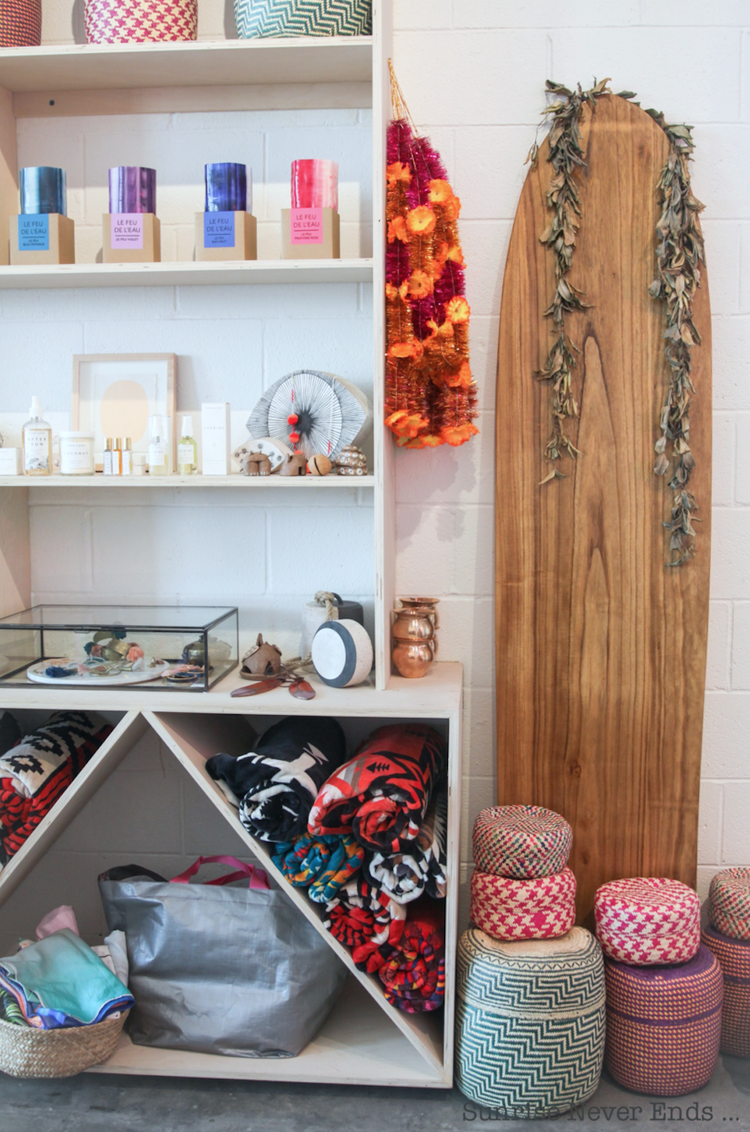 La canicule s’étant éloignée, allons retrouver un peu de chaleur et de soleil de l’autre côté de la planète !!! Aujourd’hui direction Kailua, à Hawaii pour découvrir l’une des plus jolie boutique de l’île, Aloha Superette !!! C’est Jennifer, la créatrice des mes pochettes adorées Saumura, qui a ouvert ce bazar chic de la plage … Vous pouvez y trouver toute sa collection déclinée à partir de ses photos, pochettes, maillots de bain, kurtas et aussi les sublimes planches shappées par Travis Reynolds !